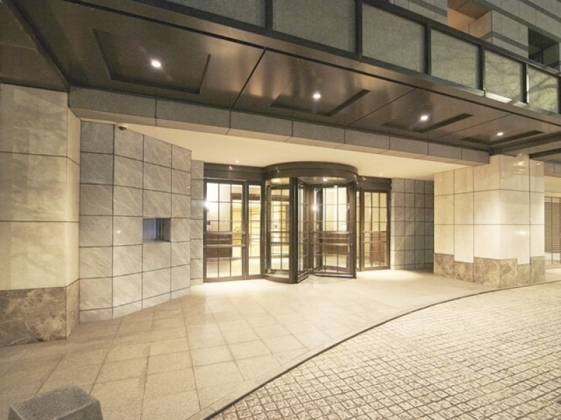 ブラウン・ベージュ・ホワイトの三層の色調で、ファザードに落ち着きのある高級感を演出。ホテルのエントランスを思わせる回転ドアを入ると、広々としたエントランスホールが人々を迎え入れます。