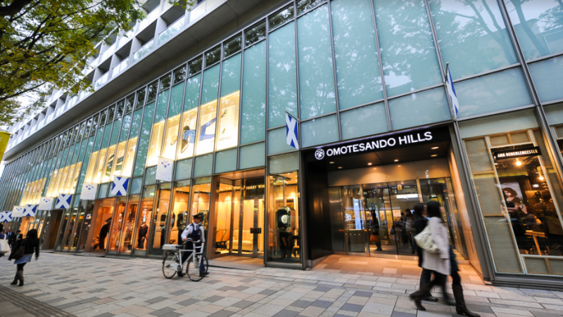 スラリとしたフォルムにガラス張りが多く使用されたファザードは視認性が良く、角地という好立地に加え、信号待ちで人が止まるという好条件。竣工以来「FILA」「mizuno」「TOMMY HILFIGER」などが入居しています。