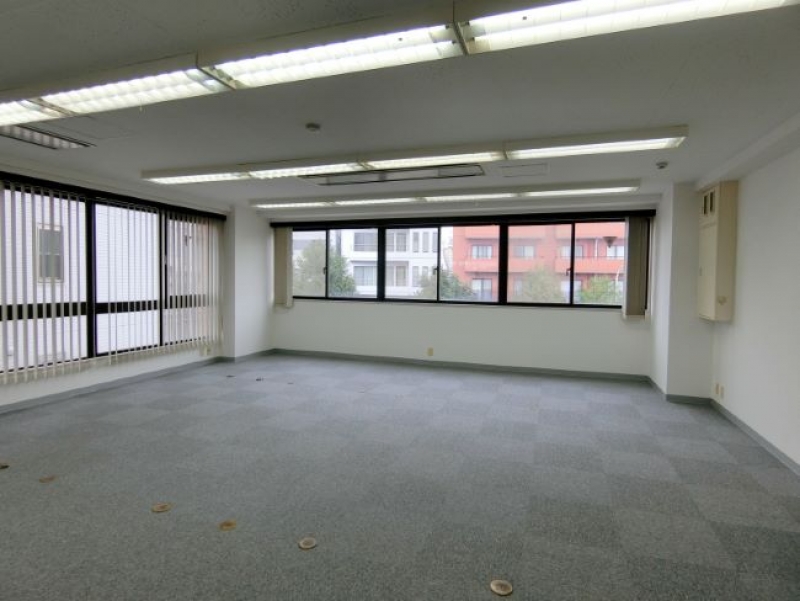 基準階面積は綺麗な長方形をした約30坪のオフィス空間。男女別トイレ・給湯室をエレベーターホール側に配し、室内のドアも2ヶ所にありレイアウト効率も含め大変使い易い形状となっております。三面採光で明るさも十分な温かみのあるオフィスとなりそうです。
