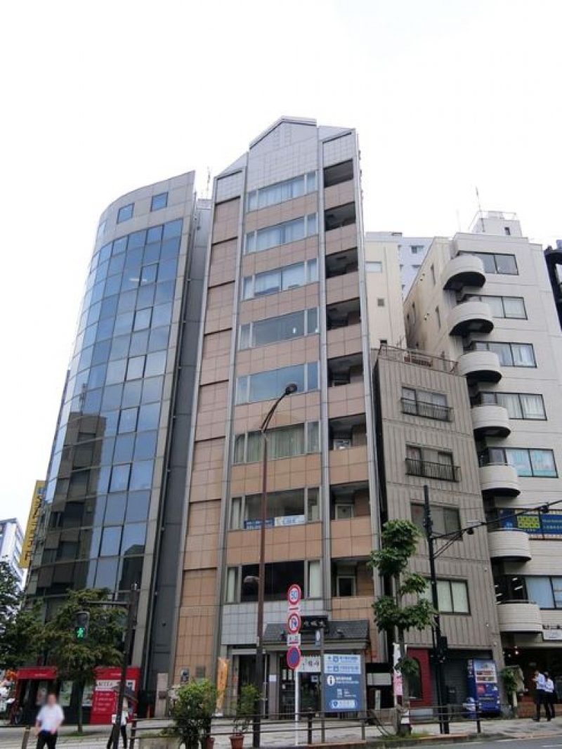 三田駅より徒歩4分、三田二丁目のT字路、桜田通り沿いに建つ賃貸オフィスビル。