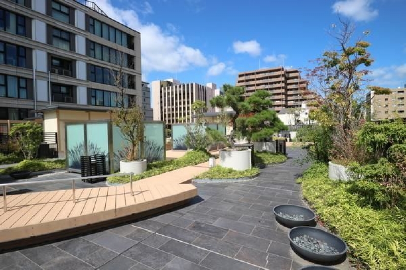 建物1階には店舗があり2階以上が住戸フロアとなっています。室内はゆとりある間取りで、分譲ならではの高機能・高品質の設備を搭載。共用廊下はホテルライクな内廊下を採用し、ロビーにはコンシェルジュカウンターを備え、居住者様のサポートを致します。屋上には開放感のある植栽で彩られた屋上庭園・テラスが設けられており、安らぎを与えてくれます。セキュリティにおいては、防犯カメラ・ハンズフリー型セキュリティインターホンと連動したエントランスのオートロックを設置し、住まいの安心を守ります。