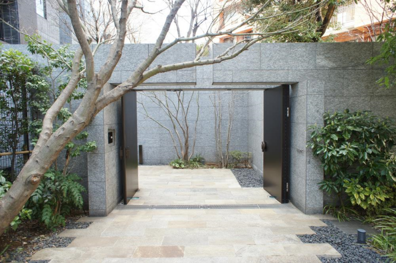 エントランスが3ヶ所あり、私邸のようなプライバシーが確保されています。敷地内には滝の流れる庭や高低差をもたせた渓谷のような庭など、多彩な景観を楽しむことができます。