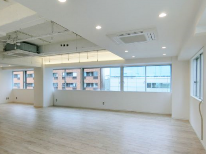 ヴィンテージの建物になりますが、リノベーションを行い、内装はデザイナーズを感じさせるシンプルでお洒落な印象に仕上がっております。白で統一されており、窓も多いので明るく清潔感のある空間でお仕事も捗りそうです。