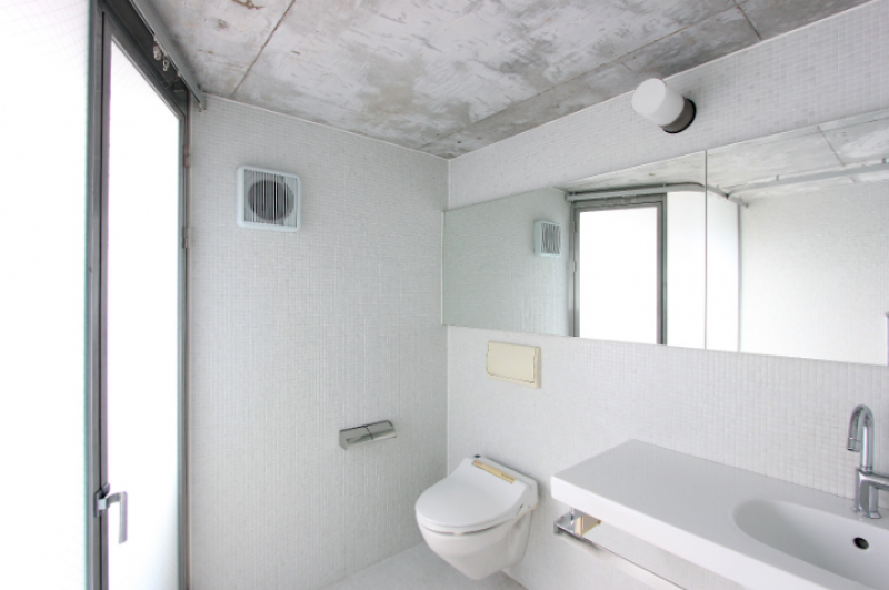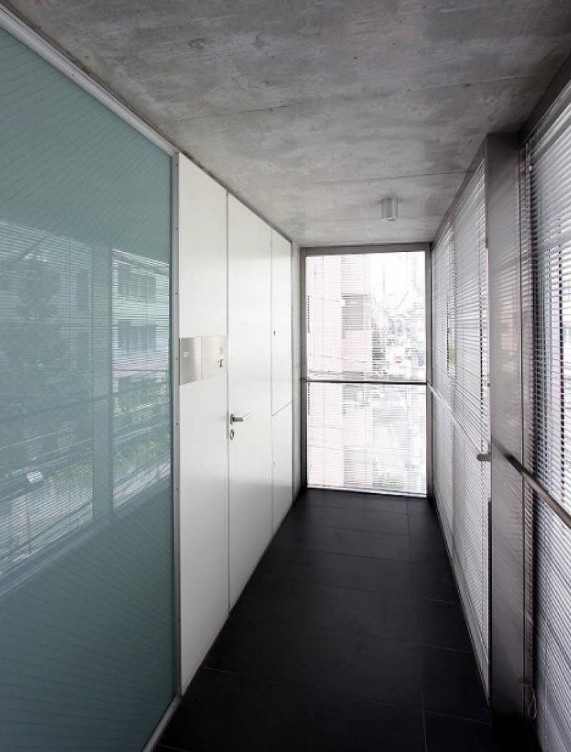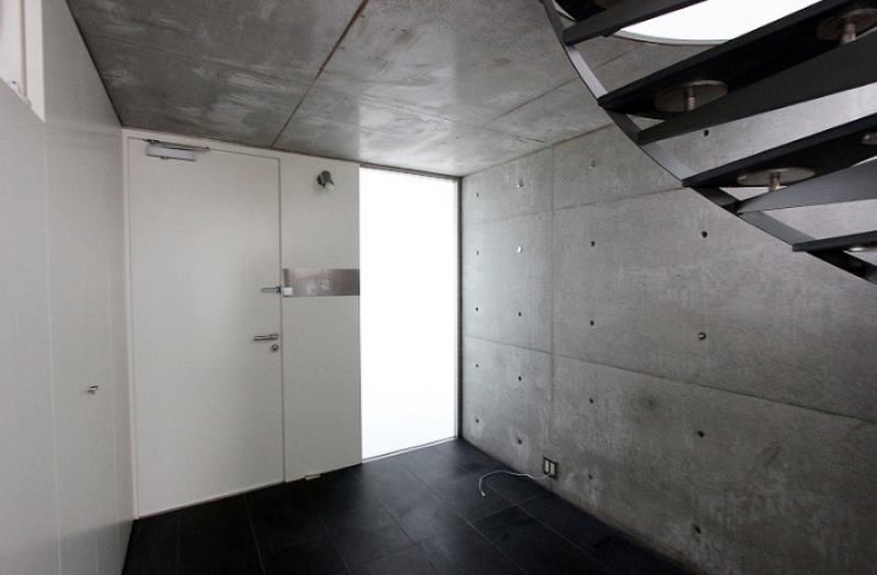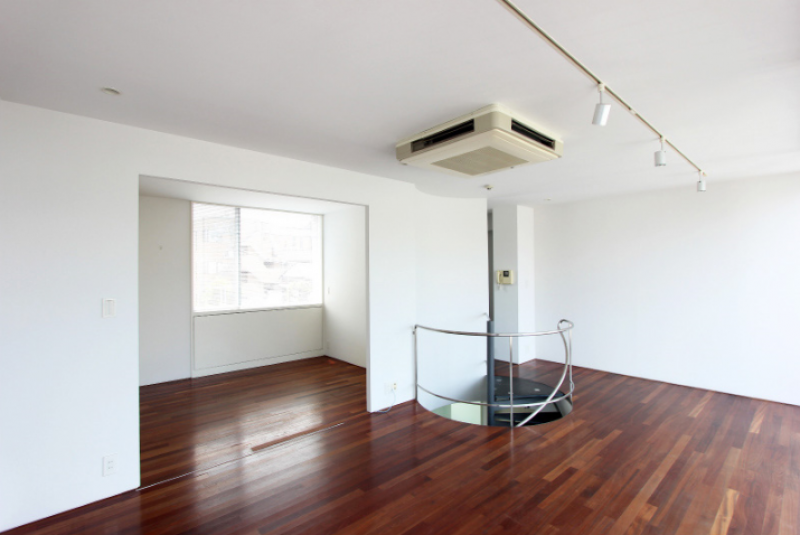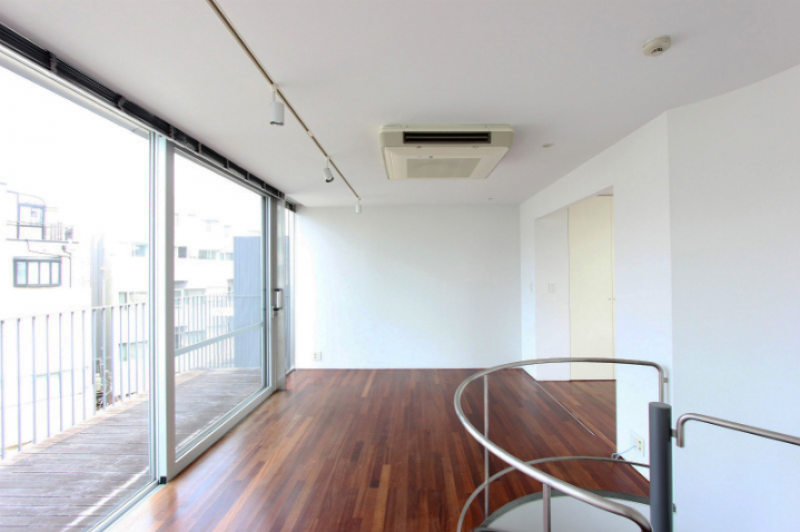 コンクリート打ちっ放しの外壁に、ガラス面を多く取り入れた視認性と採光に優れた建物です。室内はメゾネットタイプになっており、白を基調とした清潔感のある雰囲気。