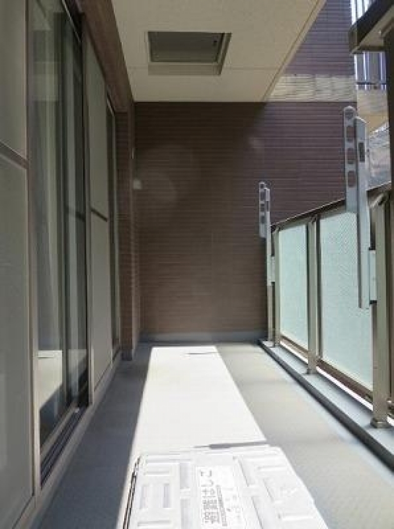 外観はブラウンの細やかなタイル張りで、すりガラスを使用したバルコニー手摺がデザイン性を高め、邸宅の趣を醸し出しています。