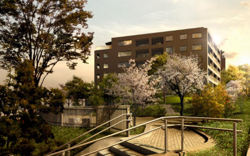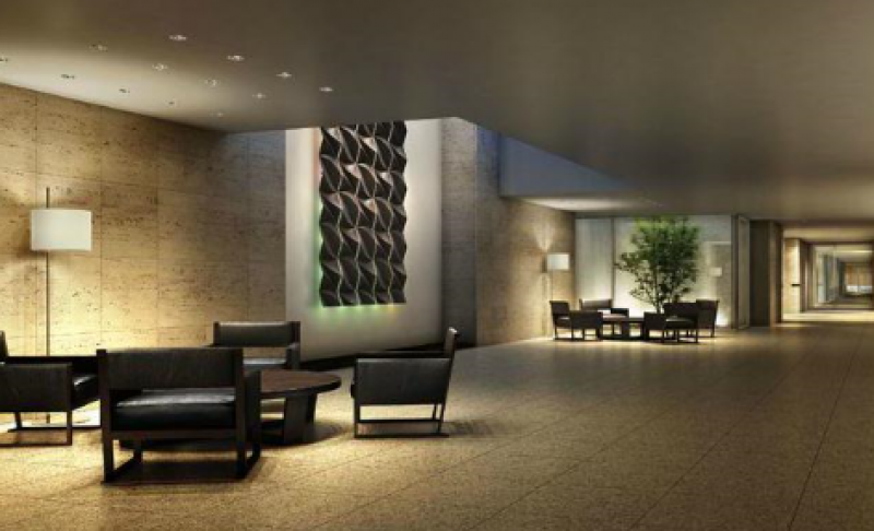 周辺環境と調和した落ち着いた色調の外観。共有部には分譲マンションならではのコンシェルジュサービス、ラウンジ、来賓に役立つゲストルーム等をご用意しております。
