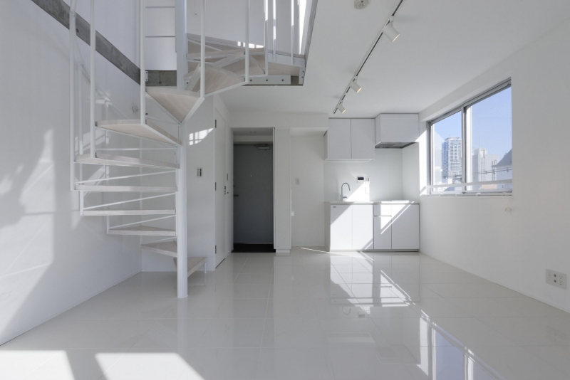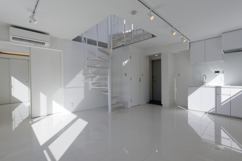 タイル張りの床と白を基調にした明るく広々とした室内は、細部にまでデザイナーのこだわりが滲み出ています。