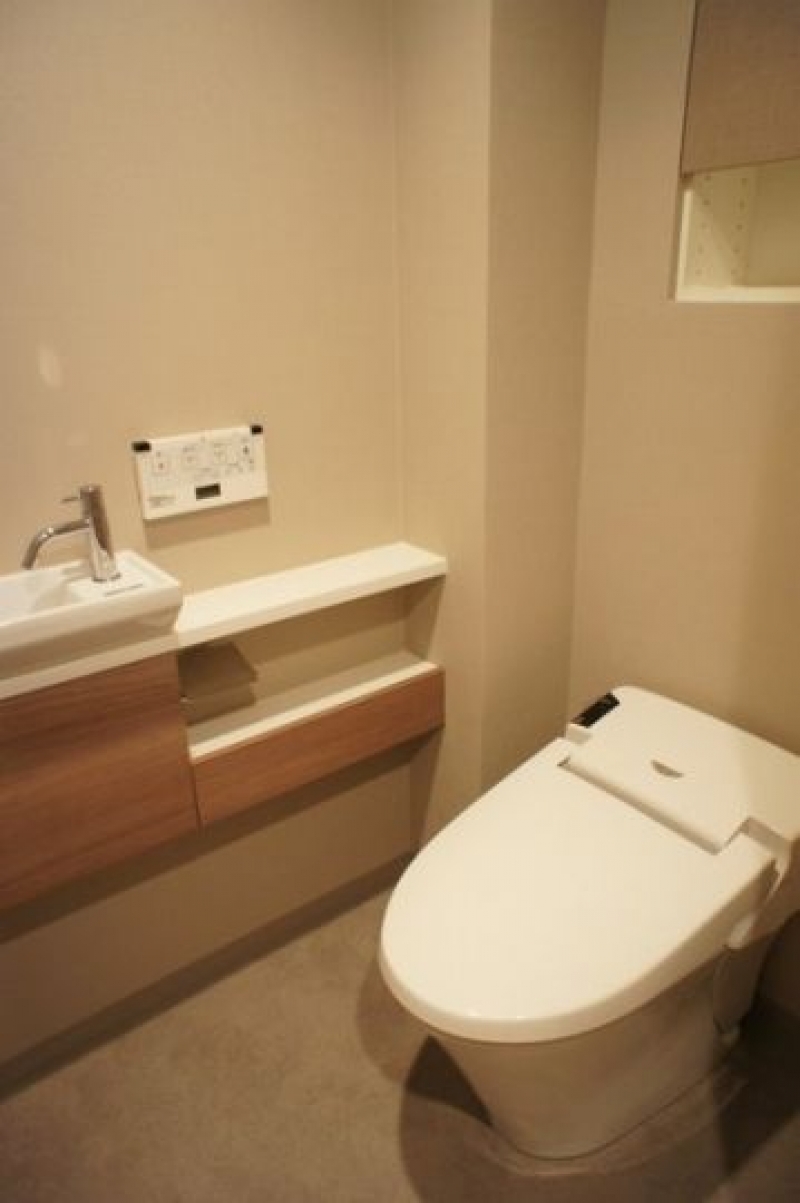 白を基調とした低層の外観フォルムが洗練された印象を与え、ラウンジスペースや内廊下などの共用部が高級ホテルの雰囲気を纏っています。シングルやディンクス向けの間取りが中心で、玄関や洗面カウンターには大理石を使用するなど素材にこだわり上質な生活を演出します。