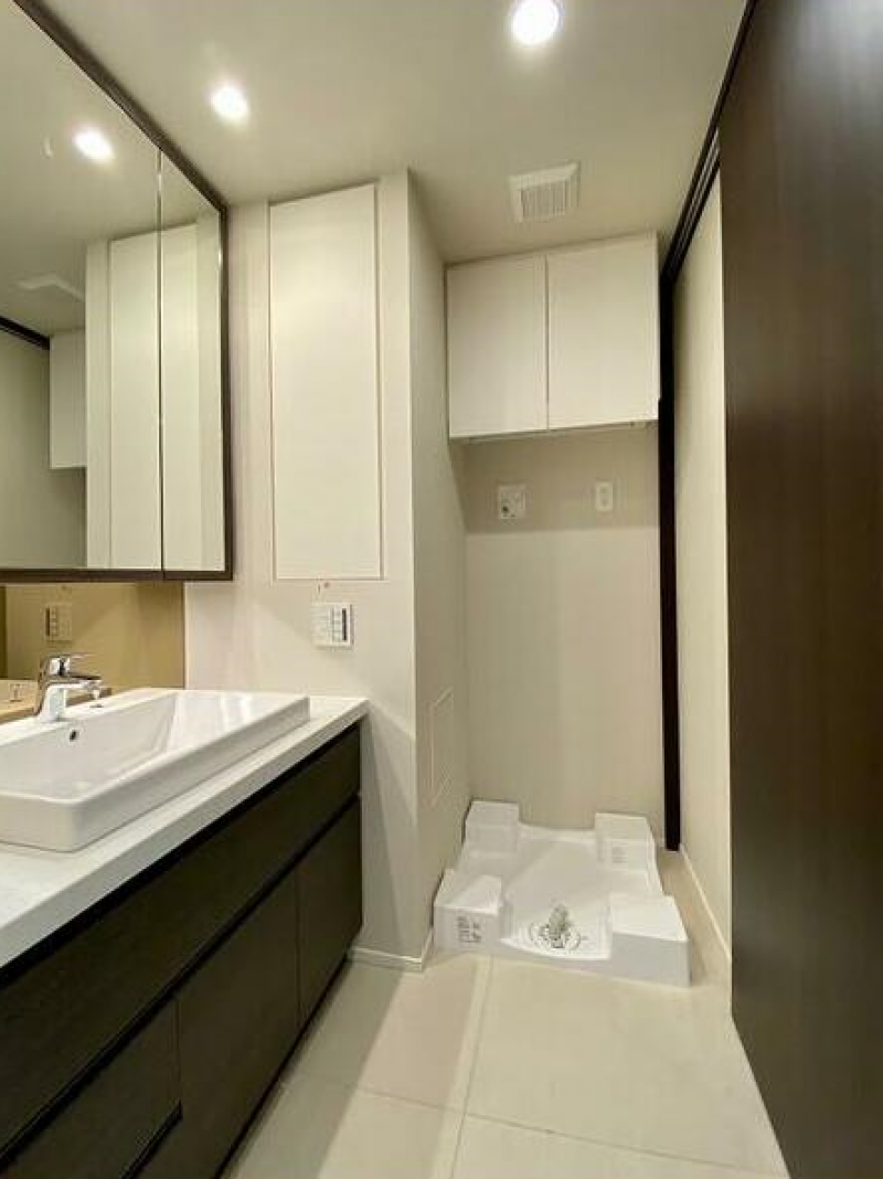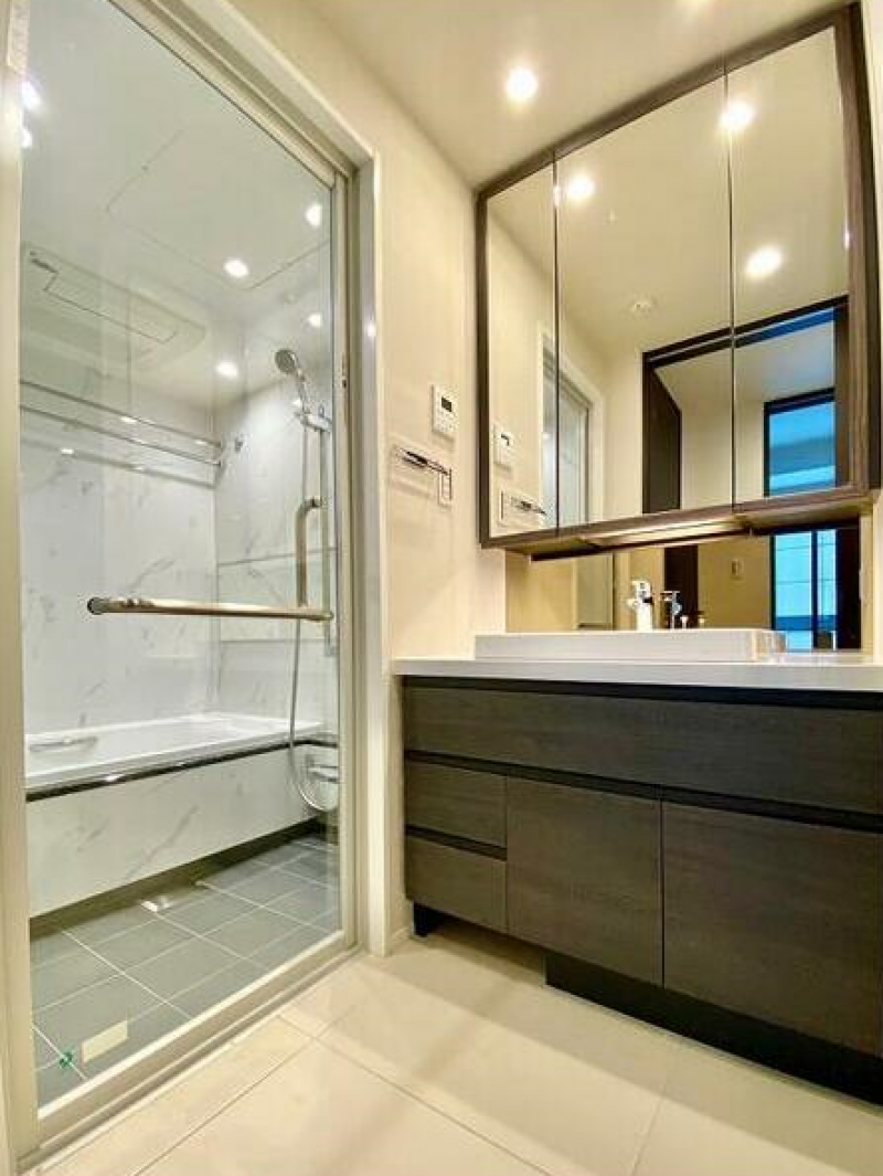 日本初の分譲マンションの建て替えとしてメディアにも取り上げられた物件で、住宅の他に店舗やオフィスが入る複合ビル。低層階部分のガラス張りが目を引く外観はこのエリアに相応しい都会的なフォルムとなっています。ホワイトと木目を基調とした室内は落ち着きがあり、シャープで洗練された印象。
