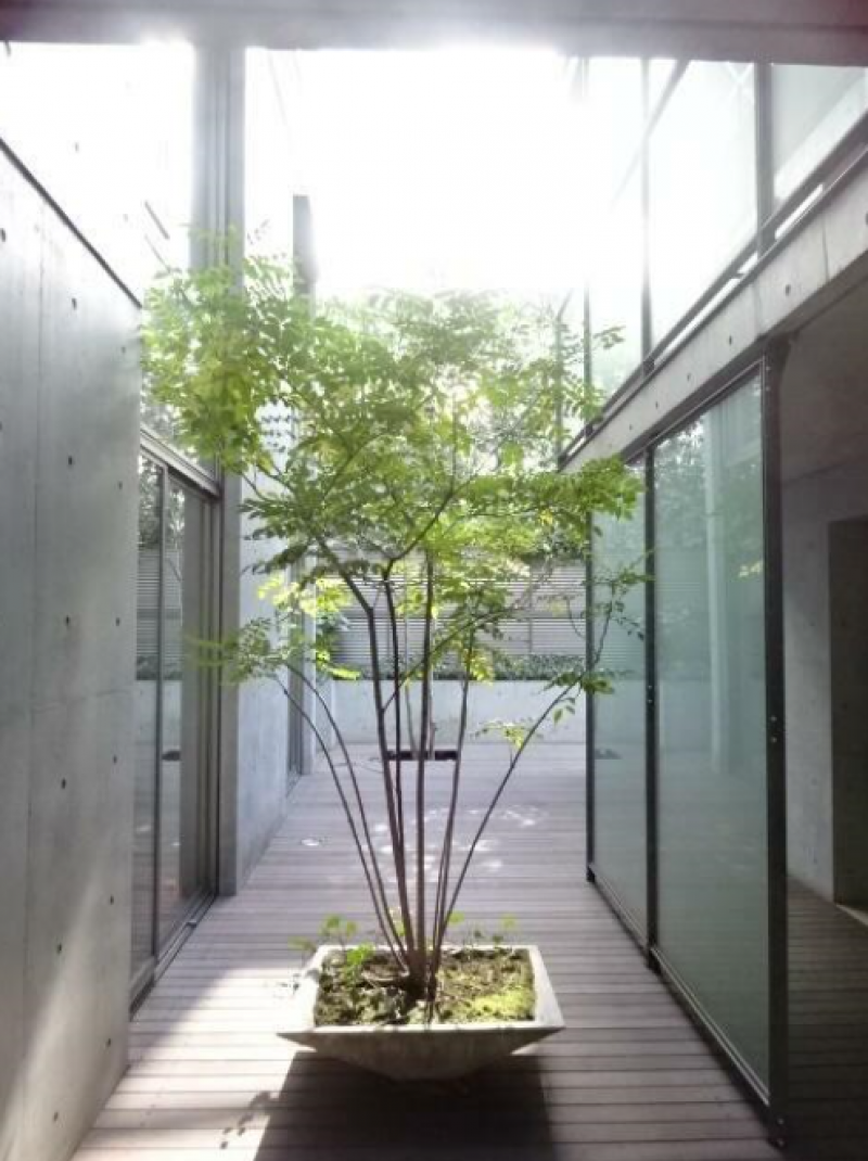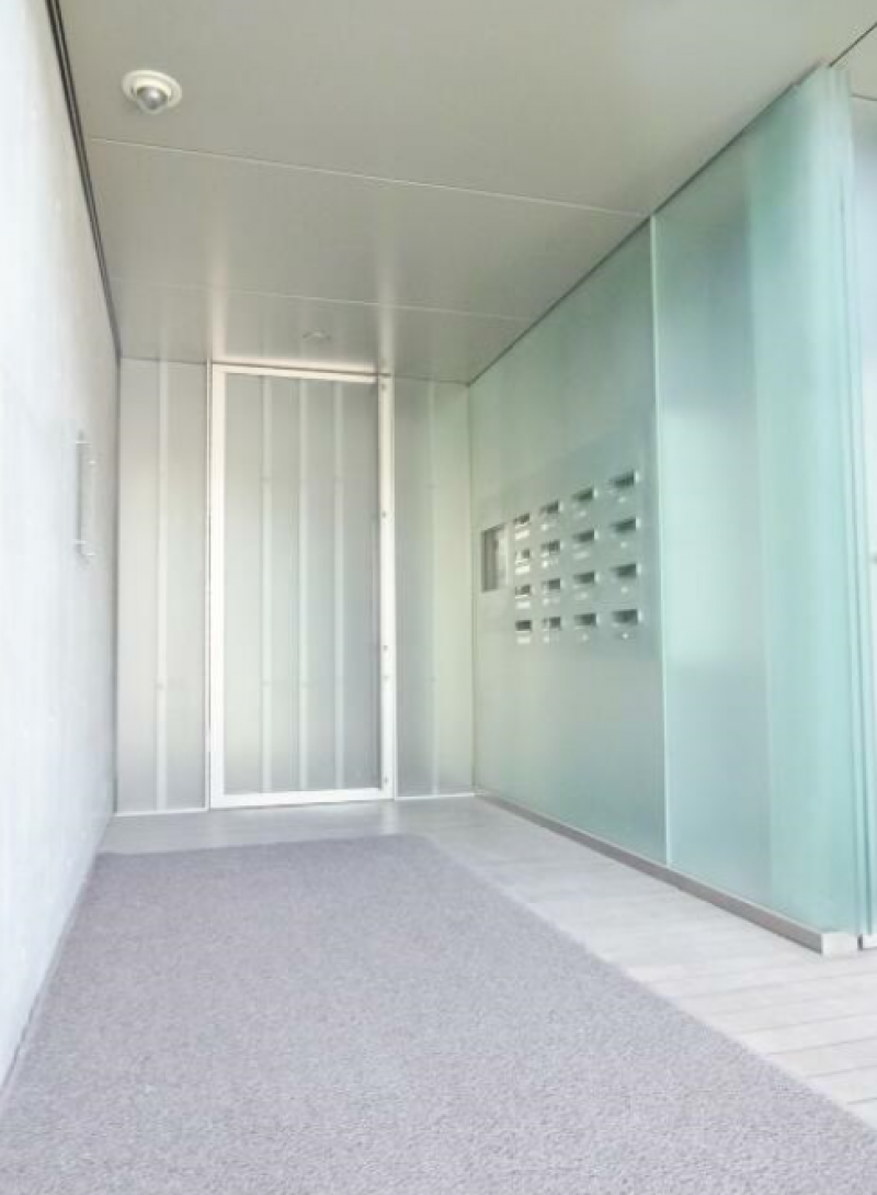 コンクリート打ちっぱなしの外観は、スタイリッシュでありながら重厚感溢れるデザイン。各所にゆとりを持った空間を配することで、邸宅街であるこの街の空気を取り組み、街に調和しています。