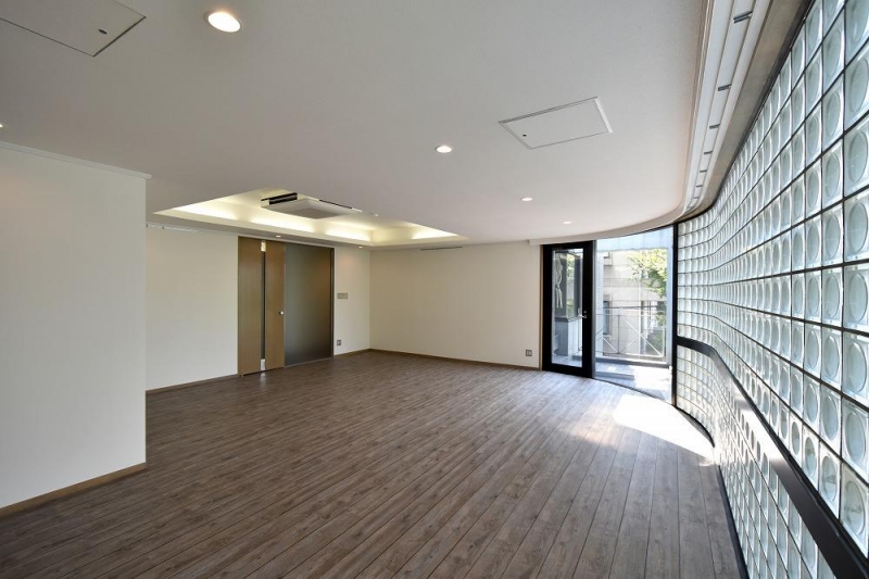 建物はコンクリート打ちっぱなしのスタイリッシュ且つ重厚感・高級感のある造りでこの街によく調和しています。室内は全面に取られたガラスウォールから溢れんばかりに注ぐ陽光が明るく広々とした空間。デザイン性の高いフローリング調がスタイリッシュな印象です。完全にセパレートされた部屋を有するため、会議室を設けるなど業務によって空間を使い分けることが出来こともでき、オフィス空間のアイデアが拡がります。