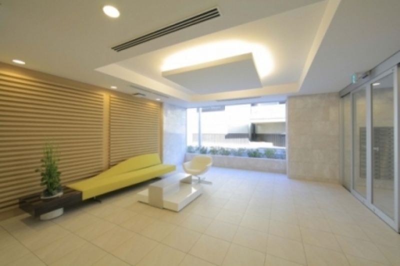 外観は白を基調としたスタイリッシュで爽やかなデザイン。1階エントランスホールにはラウンジスペースがあり、SOHO使用時の来客や打ち合わせの際に利用することができます。