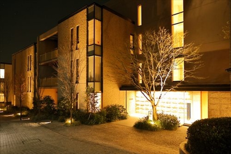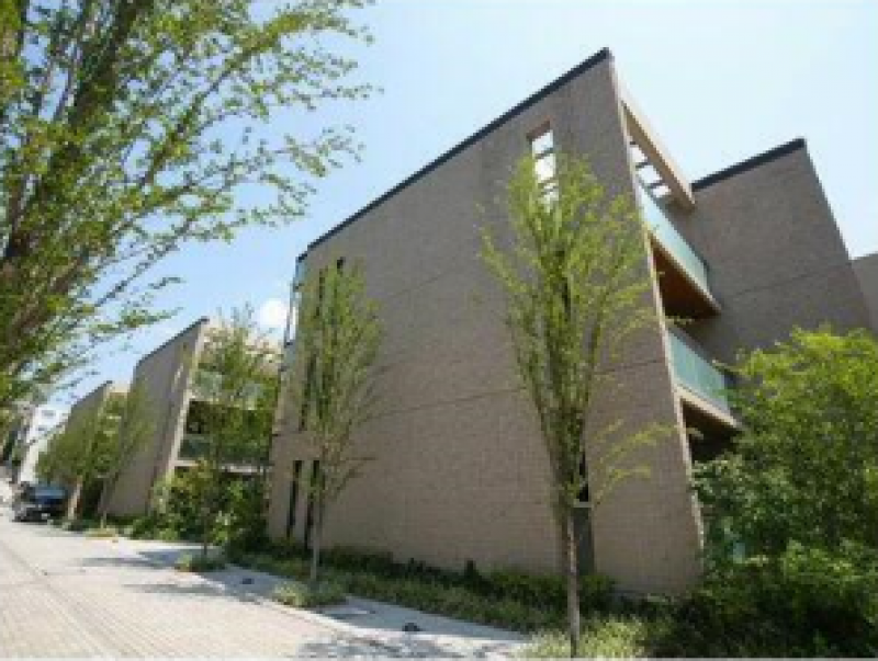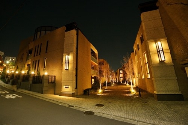 東京都建築賞を受賞した建物は、淡いグレーのタイルにガラスがアクセントとなったスタイリッシュな外観。樹木が植えられた石畳の街路を挟んで建ち並ぶ姿には品格があり、敷地全体は静かで洗練された雰囲気に包まれ、高級住宅地であるこのエリアの中でもワンランク上の異空間となっています。室内は、シンプルながらも洗練されたデザイン。広く取られた間取りは、余裕とゆとりのある生活を演出します。室内からは街路樹の緑の眺めが美しく、まさにエグゼクティブのための住空間となっています。