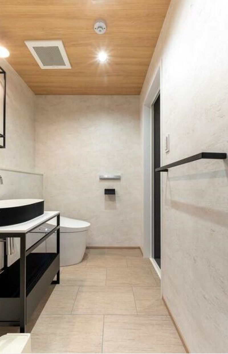 キッチンやトイレ、バスルームなどは生活感を感じさせないスタイリッシュなデザインで、オフィスとしての空間を引き締めます。