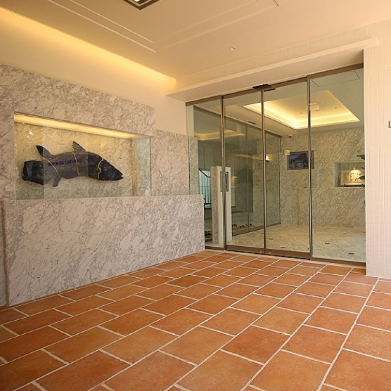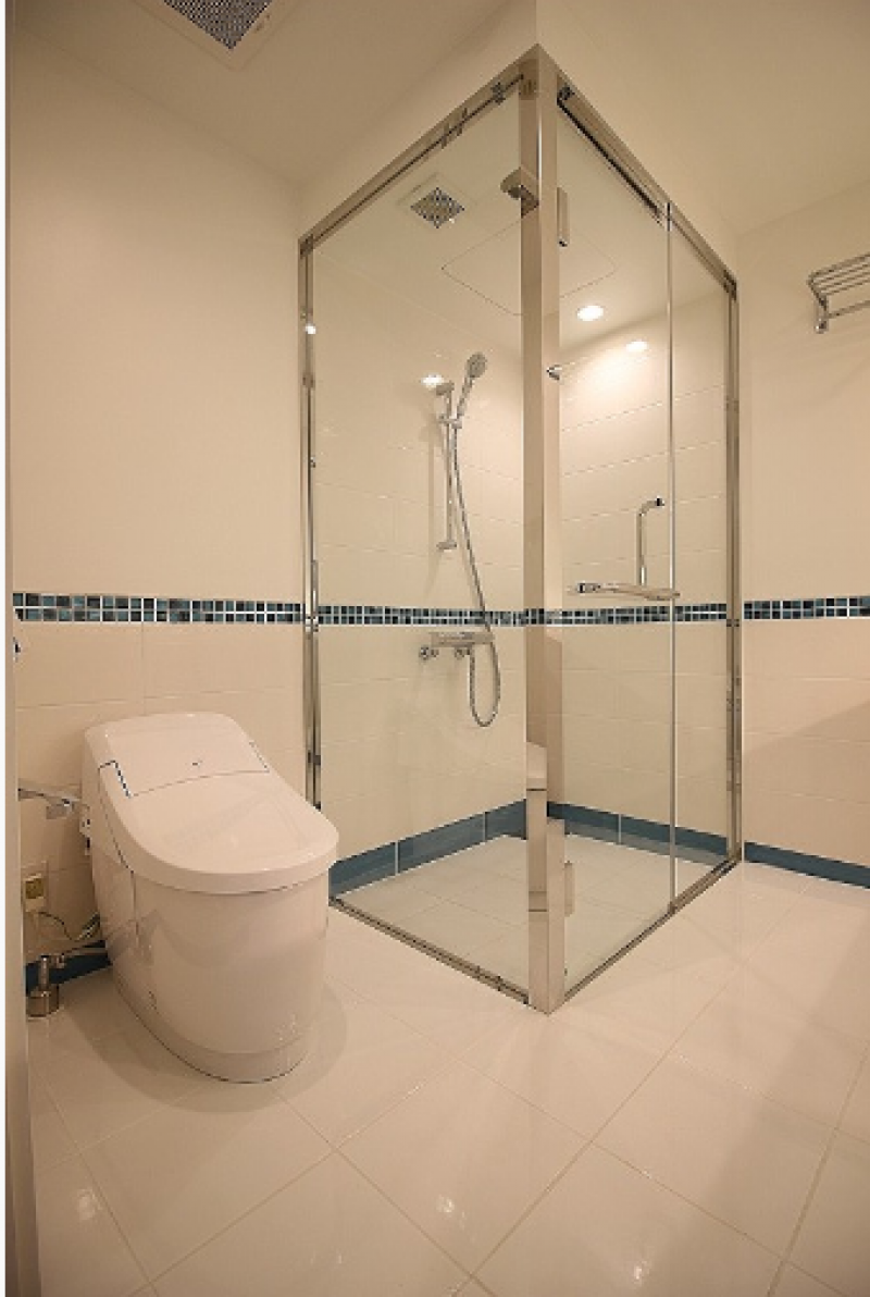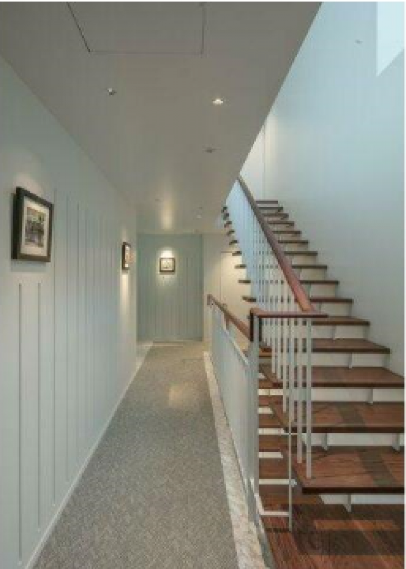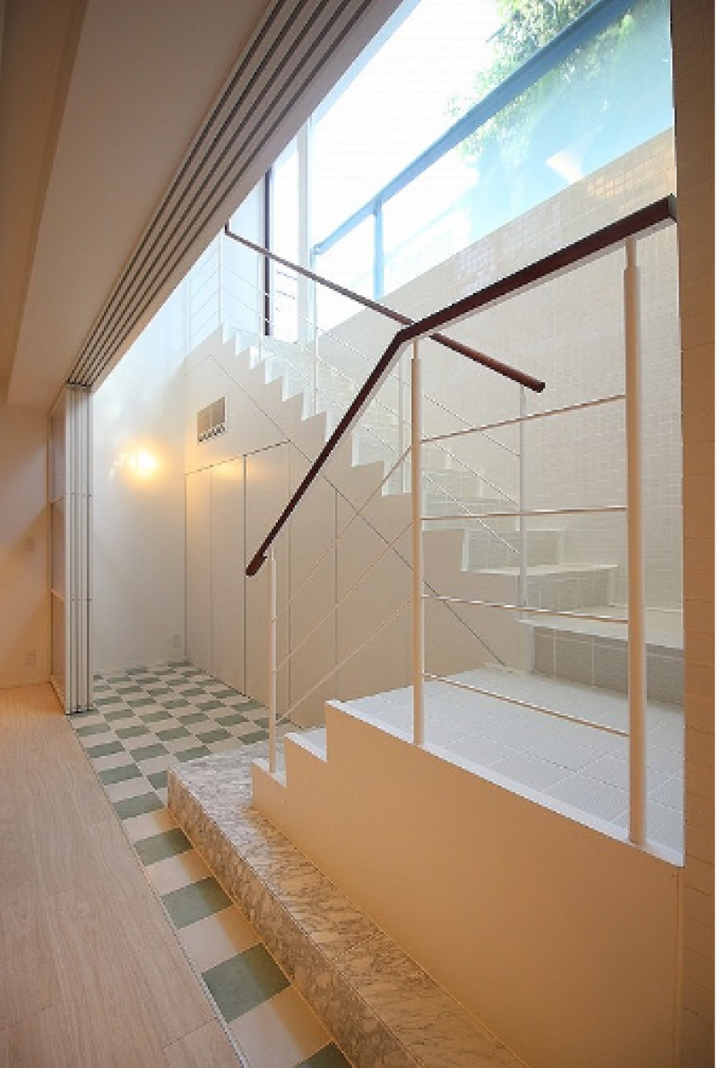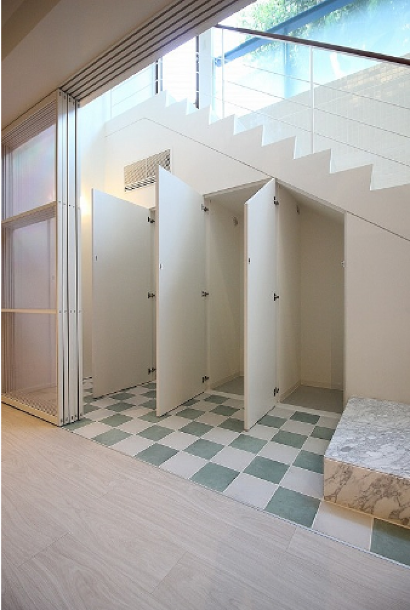 白を基調とした外観は、北青山の街並みに溶け込むおしゃれなフォルム。同じく白をベースとした室内は、アクセントカラーやガラスを効果的に用い、明るくスタイリッシュな印象。コンパクトでありながらもゆとりのある室内を演出します。