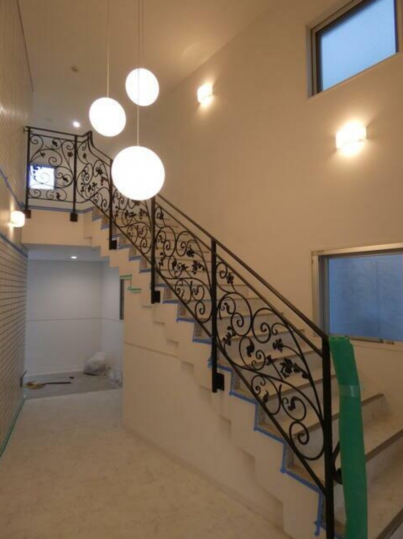 低層住宅が広がる街並みに調和するホワイトベースの外観。照明や階段など、アールヌーヴォーを感じさせる共用部が住まう人と訪れる人を迎えます。