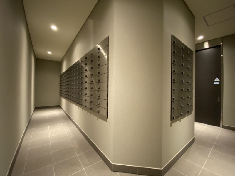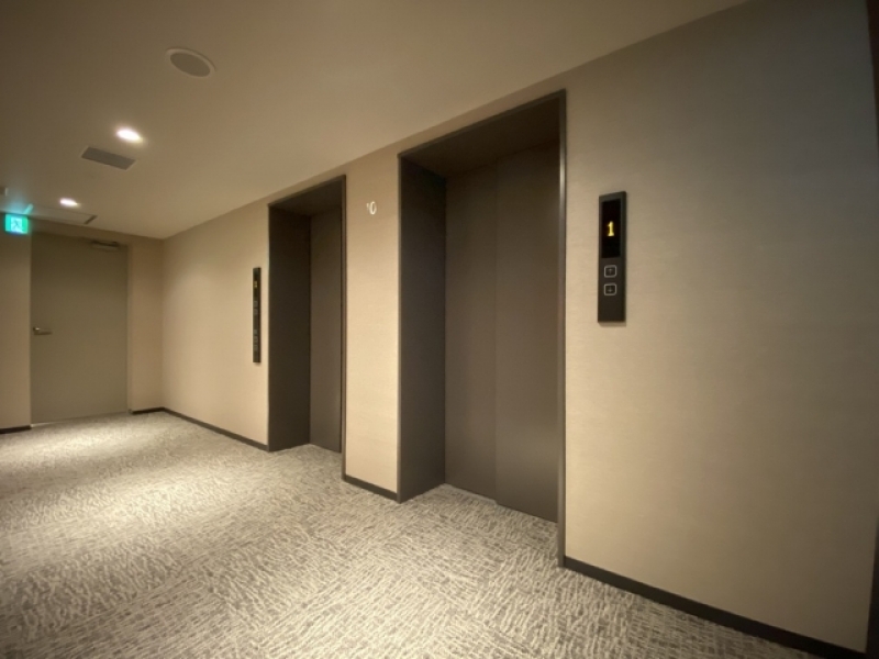 ベージュのタイル張りが落ち着きと上質さを感じさせる外観。ストーンタイルのエントランスを受けると、一面のガラス窓から光が注ぐロビーが優しく住まう人と訪れる人を迎えます。