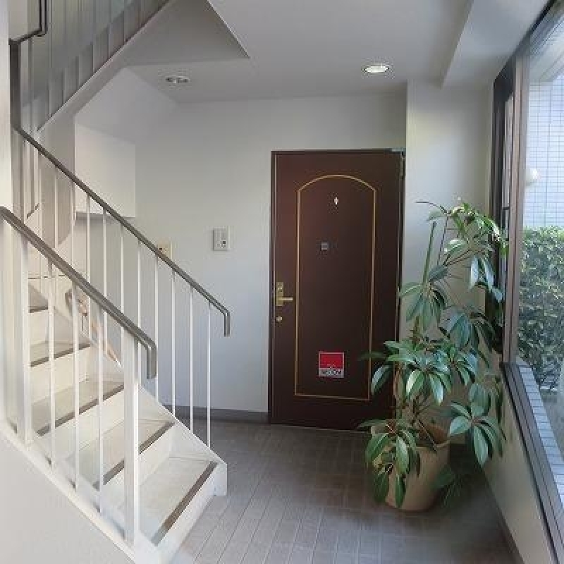 低層住宅が多い閑静な街並みと調和する、主張しすぎないライトグレーのタイル張りの外観。築年数を得ているからこその、落ち着きと安心感を感じさせます。