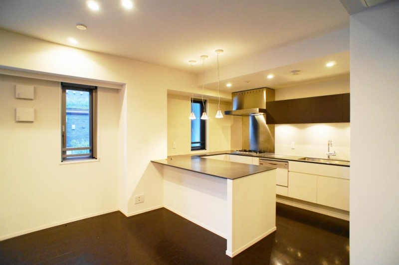 室内は都会的なモノトーンカラーで設えた、落ち着機ある雰囲気。間接照明の柔らかい明かりが、部屋全体を優しく灯します。