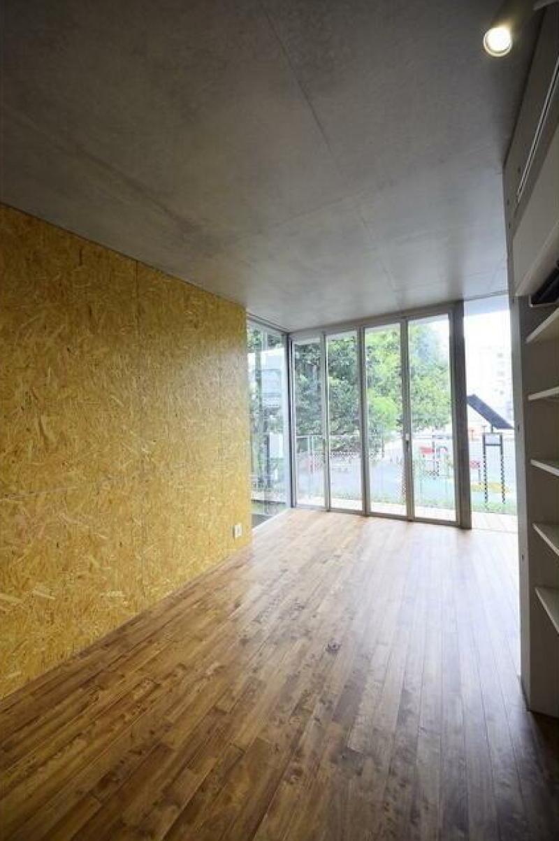 部屋は公園に開放されたテラスを持ち、特徴的な斜めの天井が公園からの視界を遮りながら、光や風を採り入れた居心地のよい空間。新しいワークスタイルを手に入れることが出来るオフィス空間となっています。