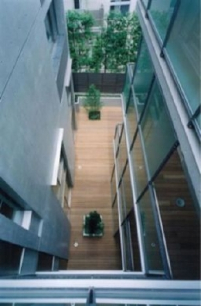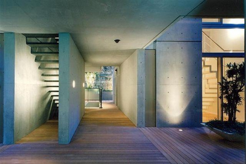 コンクリート打ちっぱなしの外観は、スタイリッシュでありながら重厚感溢れるデザイン。各所にゆとりを持った空間を配することで、邸宅街であるこの街の空気を取り組み、街に調和しています。 また、共用廊下にはウッドデッキを使用され、要所にスポットライトを配置しており、夜は幻想的な雰囲気に包まれます。