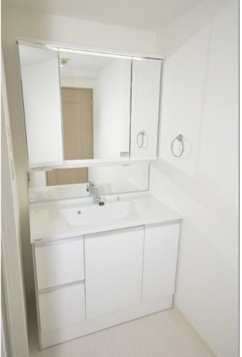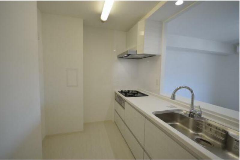 室内は白を基調とした明るく広々とした空間です。南向きに配した窓から注ぐ陽光と、間接照明の優しい灯りが、部屋全体に穏やかさを与えてくれます。