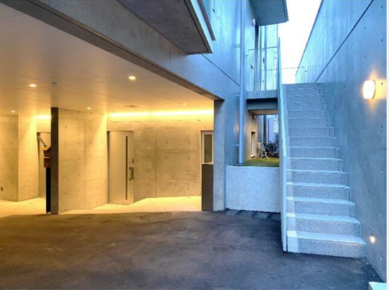 エントランスには間接照明が効果的に用いられ、無機質さとエレガントさを演出します。