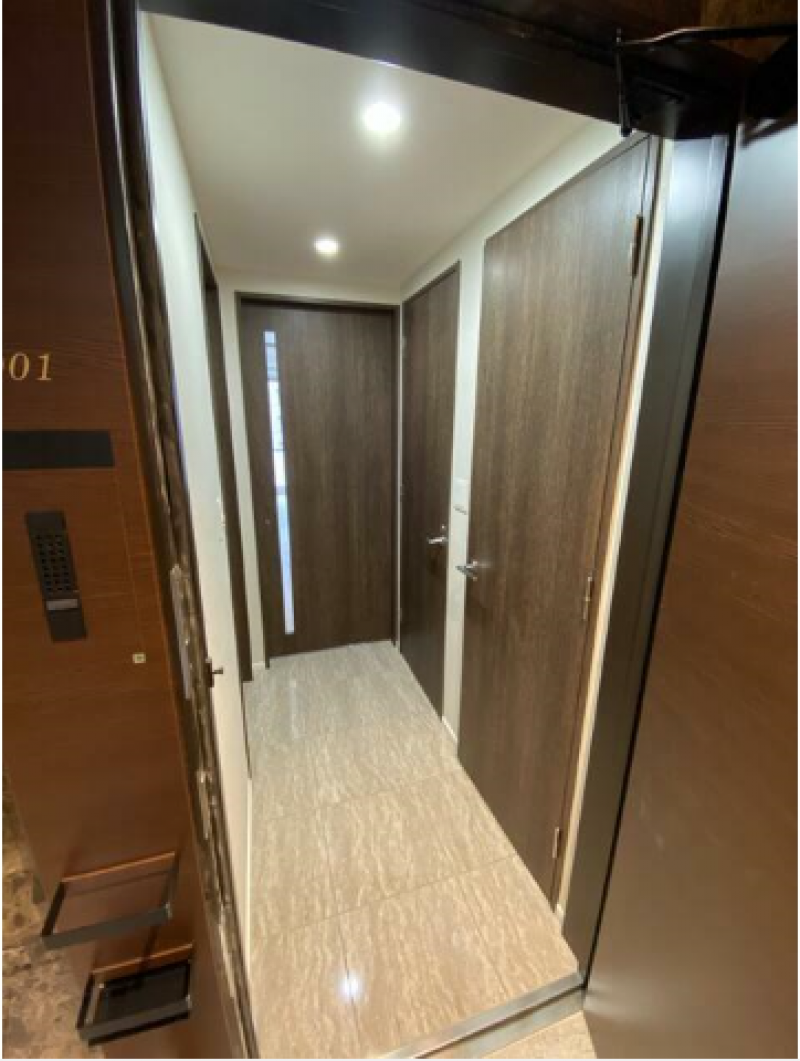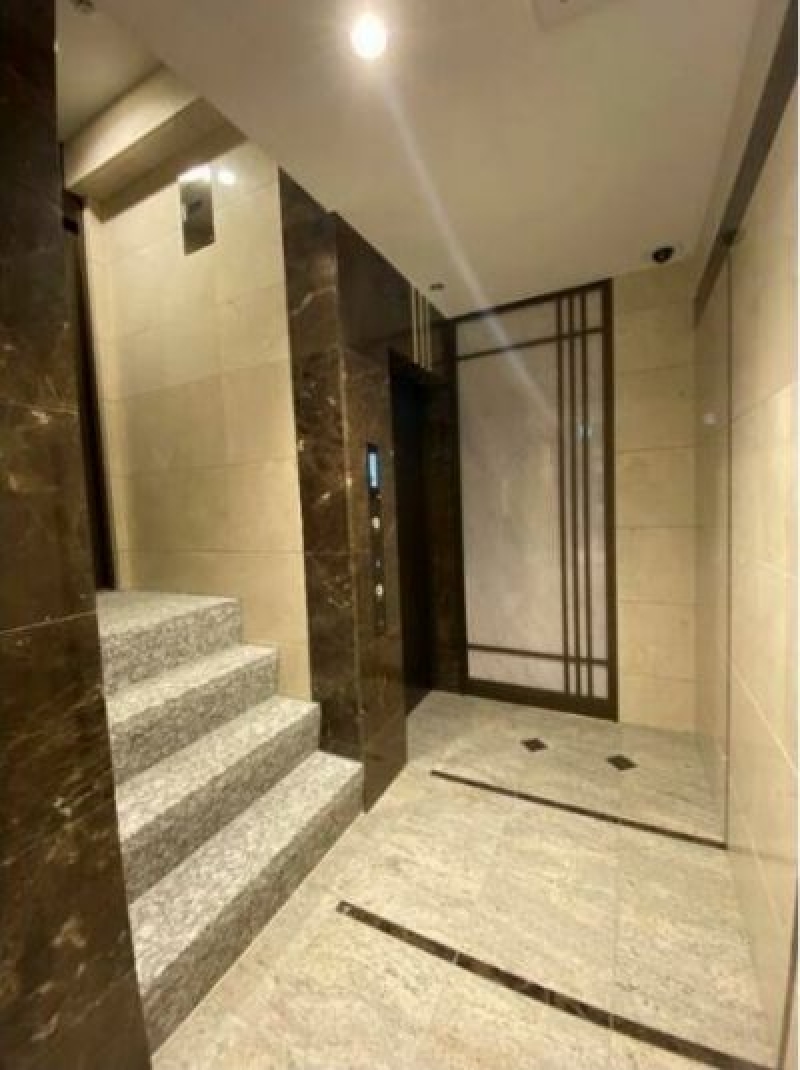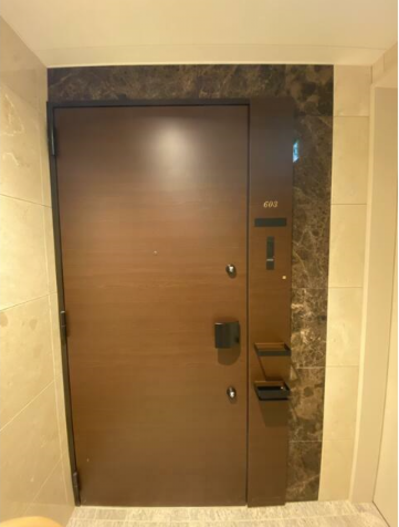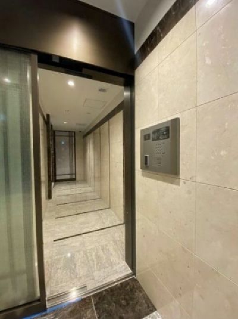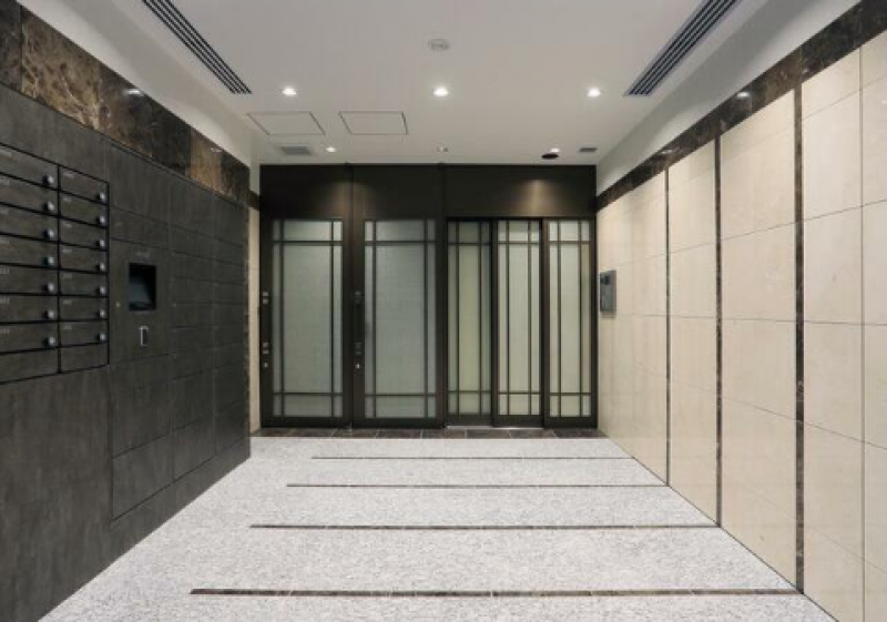 落ち着きあるブラウン系のストーンタイルの外観の建物。ビルがひしめき合う街の中でレジデンスの名に恥じない堂々とした存在感を放ちます。