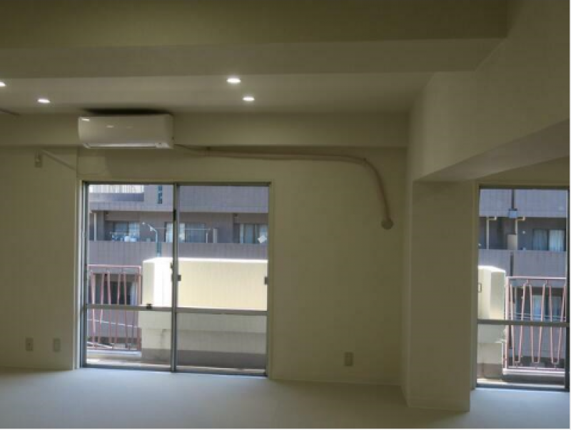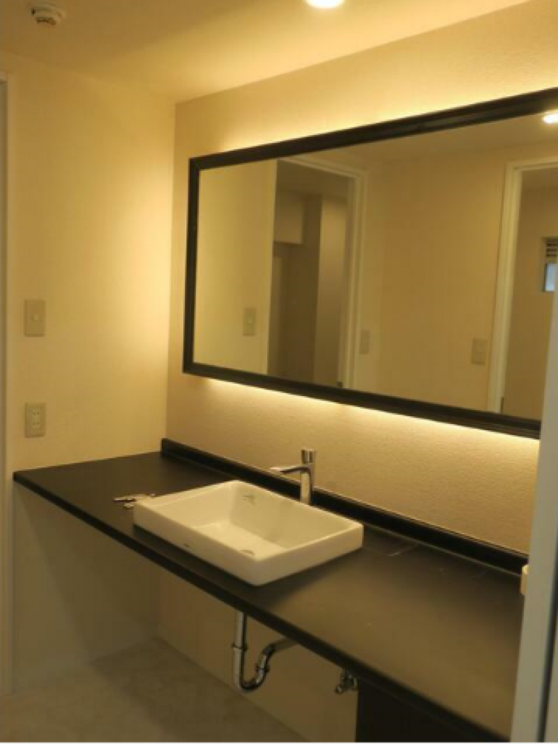 リフォーム時にレールライトなどの間接照明を配置し、部屋全体を明るくして都会的なスペースとして使う事も、照明を落として建物と共にノスタルジーに浸ることも可能。