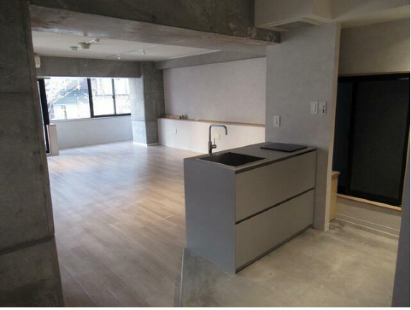 室内は打ちっ放しの壁にフローリングのシンプルかつスタイリッシュな印象。リフォームを終え、洗練さを増した空間はキッチンもトイレも新品で、新築のようなフレッシュさです。