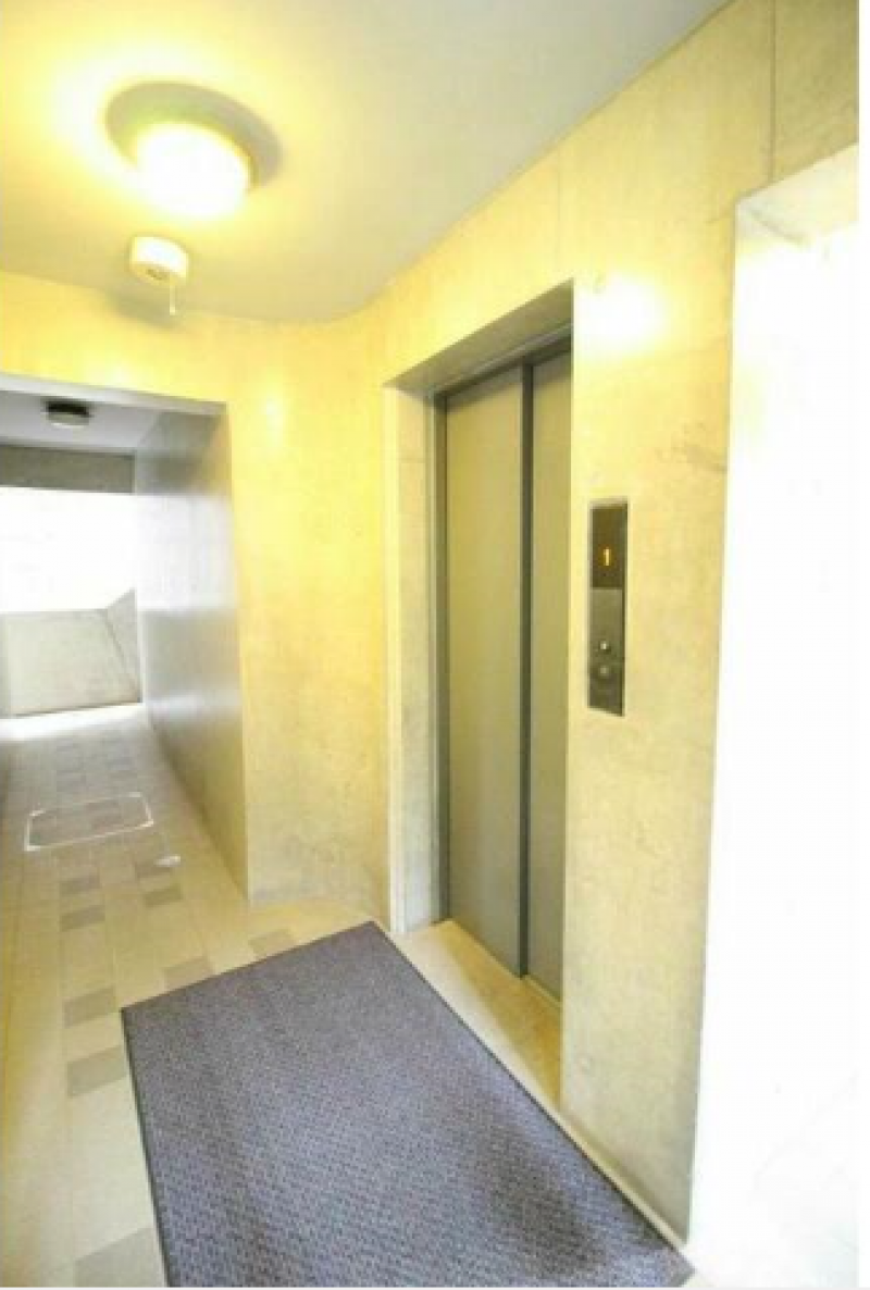 ベージュベースの外壁に打ちっ放しを組み合わせた、街に馴染むこじんまりとした建物。シンプルな設計ながらも広く取られたアプローチなどの共有部分などが、ゆとりのある空間を演出します。