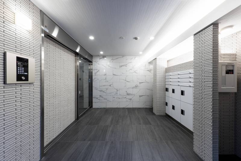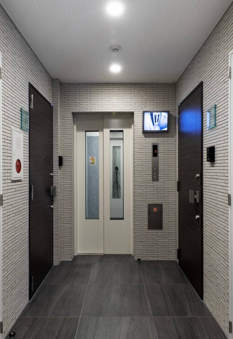 ダークカラーで落ち着いた外観、ホテルライクな内廊下設定です。